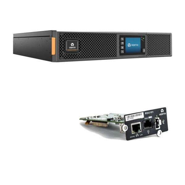 Surplus New Vertiv Liebert GXT5 2000VA 120V Online UPS (GXT5-2000LVRT2UXLN) with Factory New Liebert Vertiv UNITY RDU101 Remote Management Adapter Card (RDU101)